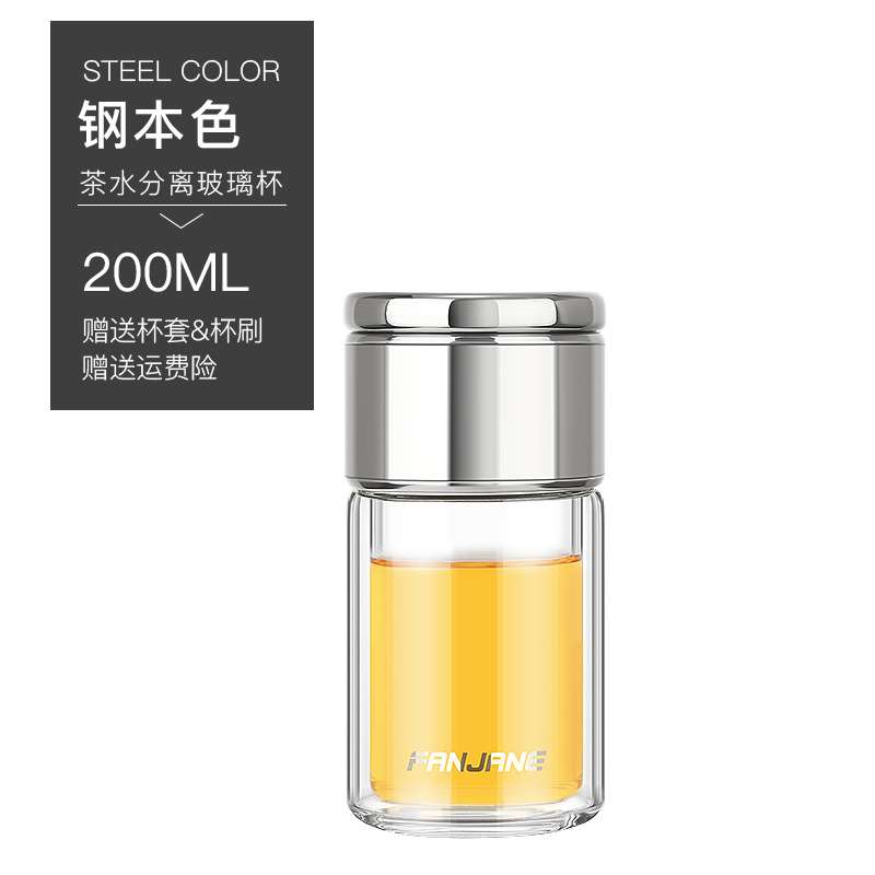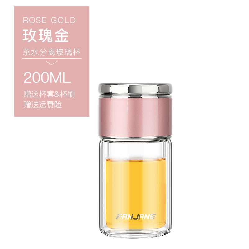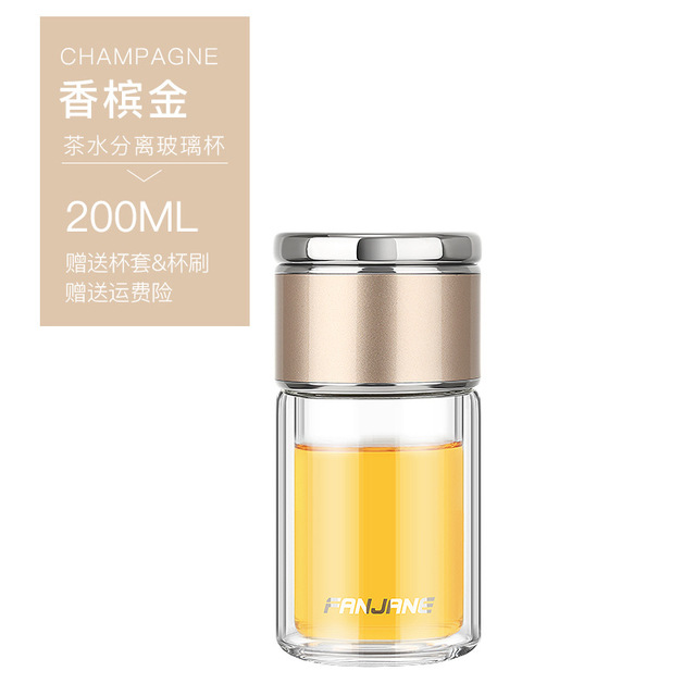 繁简男女士水杯分离茶杯双层玻璃杯过滤便携泡茶杯子茶水分离200ml(钢本色,睿智黑,香槟金,玫瑰金)
