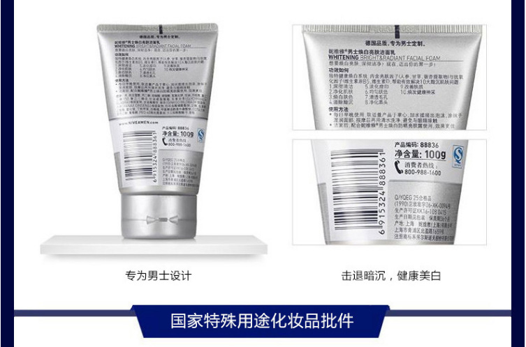 男士洁面乳100g 焕白亮肤 去角质控油 保湿洗面奶 去油护肤正品