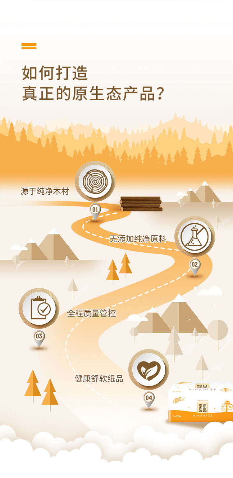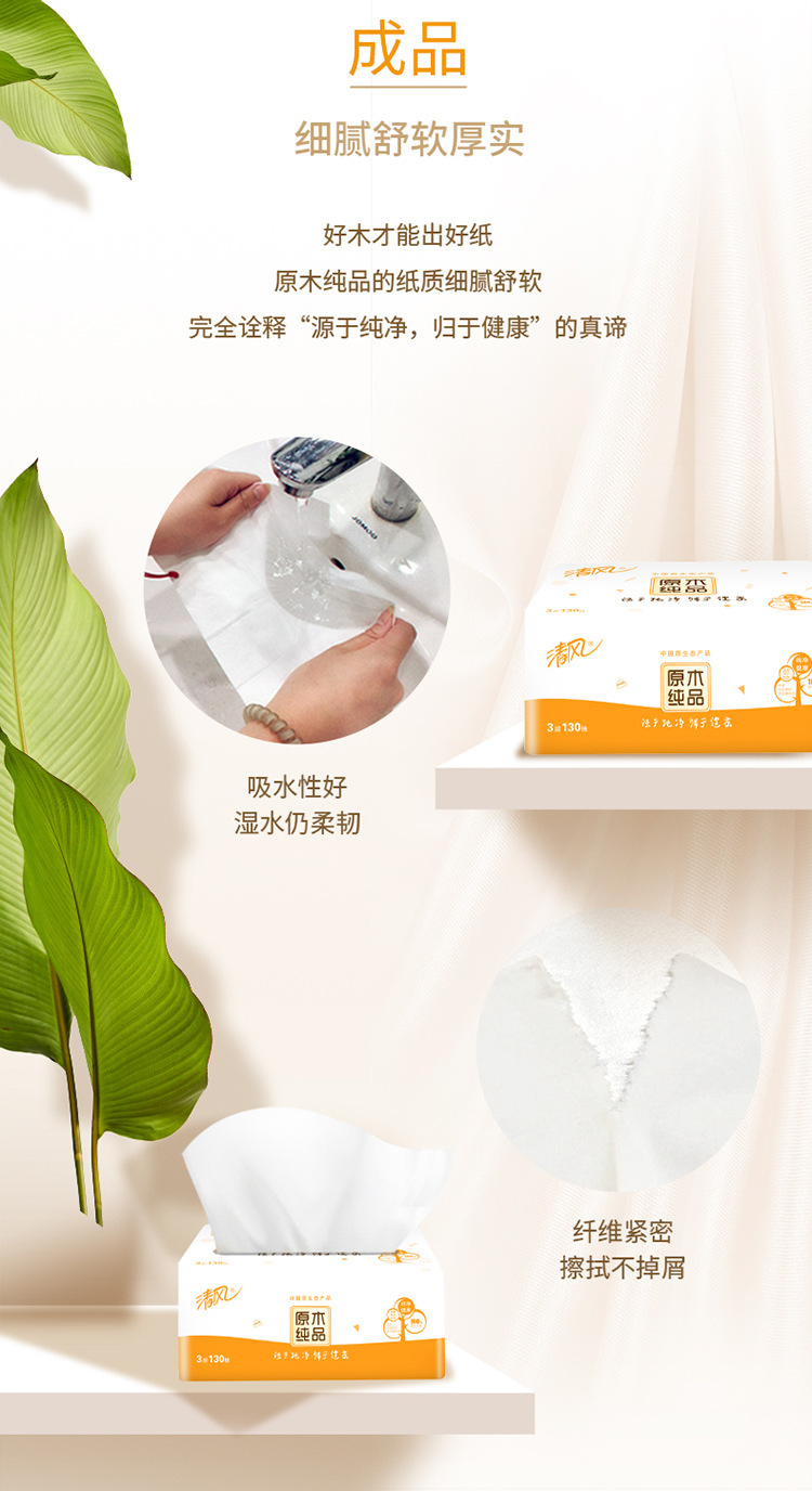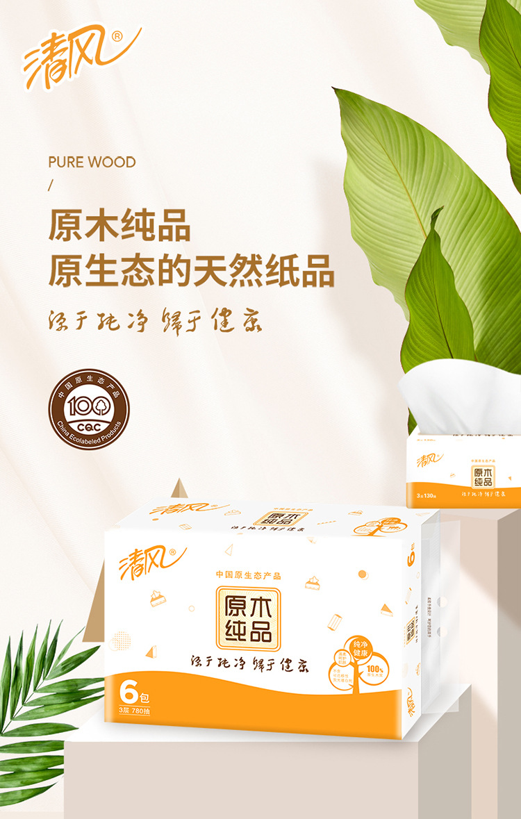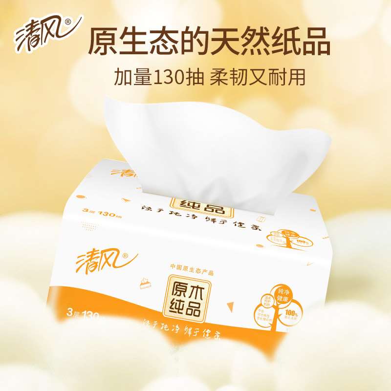 清风抽纸原木纯品3层130抽整箱24包软抽面巾纸餐巾纸