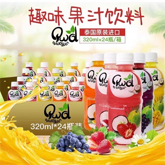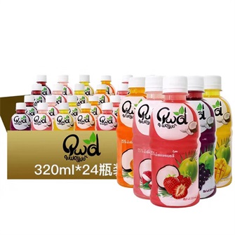 泰国进口饮料趣味果汁饮料含椰肉营养果汁320ml*24瓶/箱(芒果味、草莓味、荔枝味、葡萄味、菠萝味、哈密瓜味)