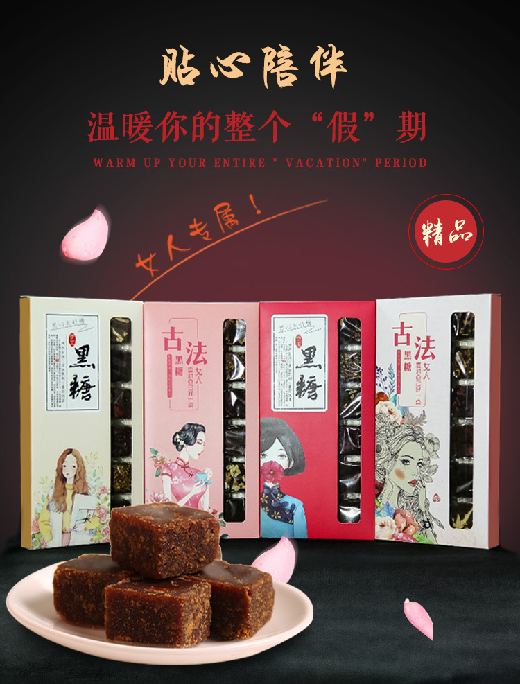 云南古法黑糖 非独立包装姜枣纯甘蔗老红糖18块黑糖(米黄礼盒装) (混合味、原味、老姜味、红枣味、枸杞味、玫瑰味、桂花味、茉莉味)