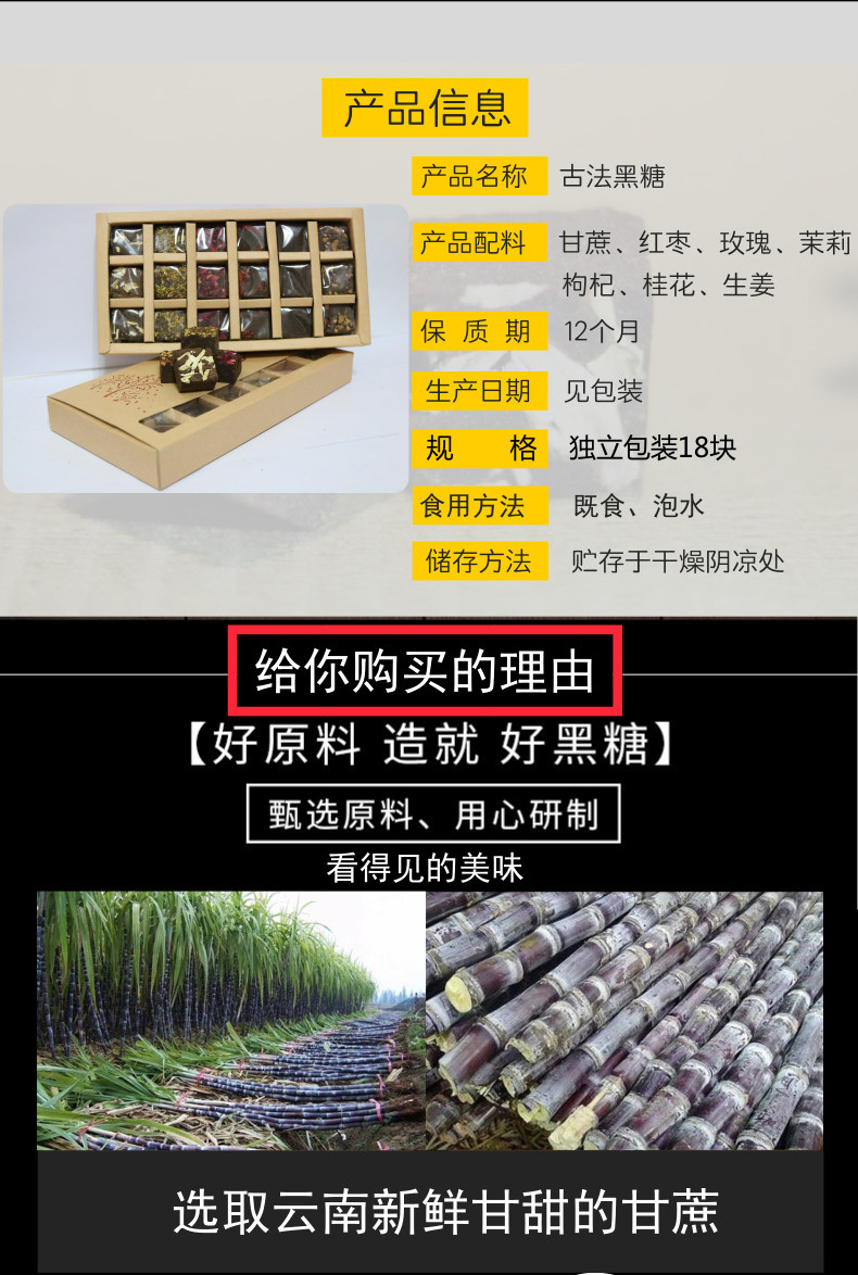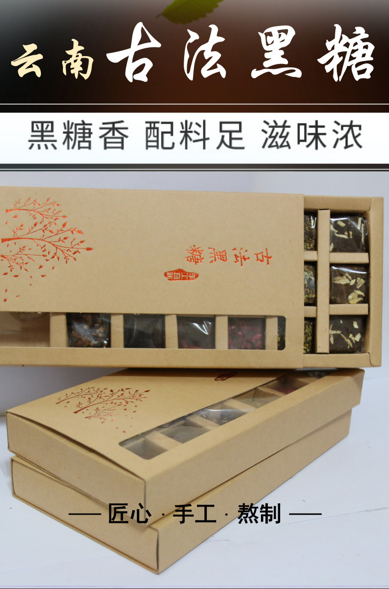 古法黑糖独立包装姜枣甘蔗老红糖牛皮纸18块手工黑糖块礼盒装