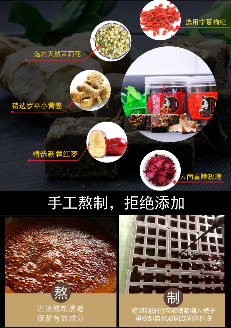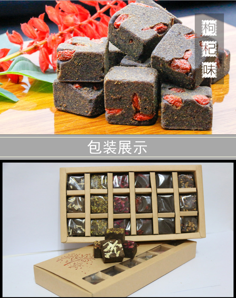 古法黑糖独立包装姜枣甘蔗老红糖牛皮纸18块手工黑糖块礼盒装(混合味,原味,生姜,玫瑰,枸杞,茉莉,桂花,红枣)