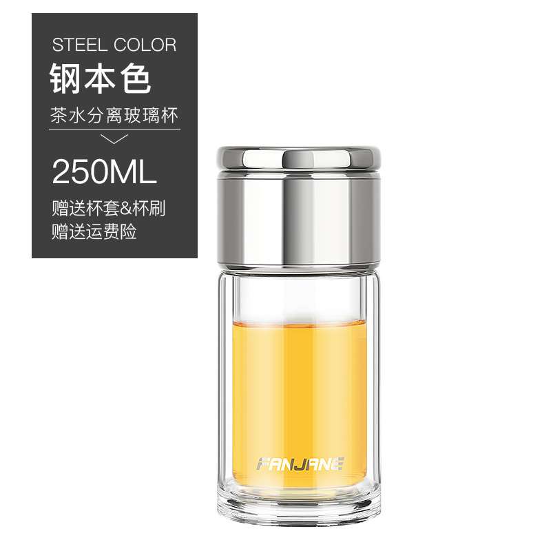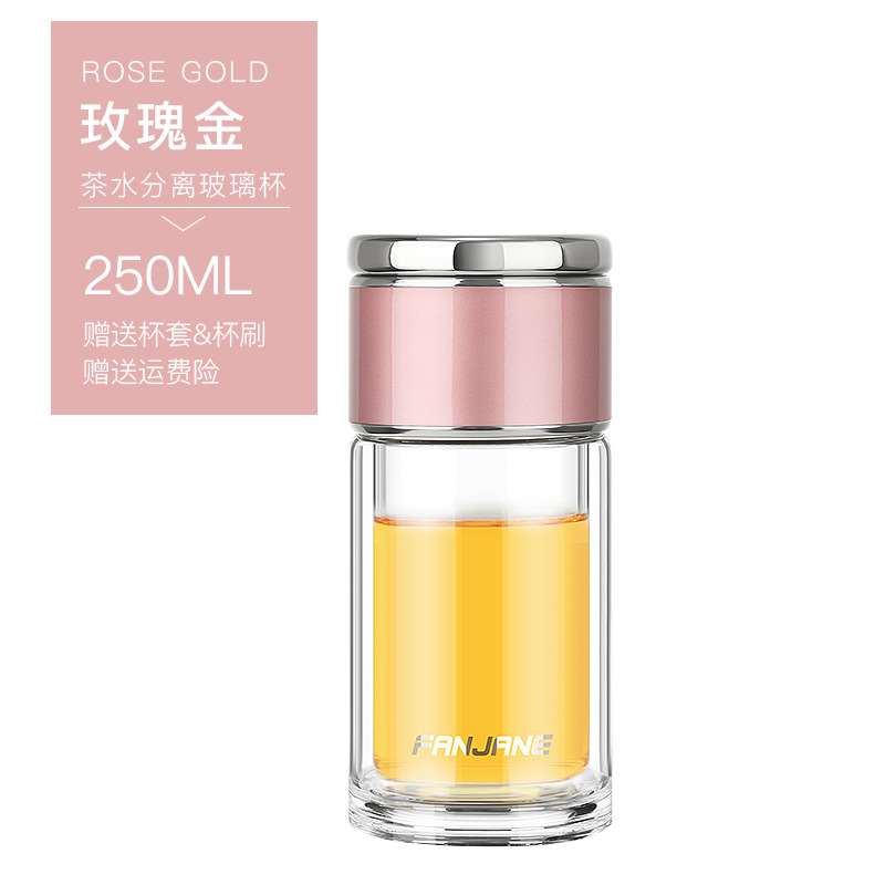 繁简男女士水杯分离茶杯双层玻璃杯过滤便携泡茶杯子茶水分离250ml(钢本色,睿智黑,香槟金,玫瑰金)