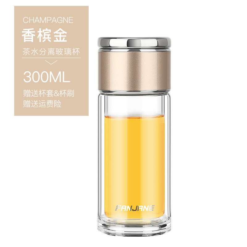 繁简男女士水杯分离茶杯双层玻璃杯过滤便携泡茶杯子茶水分离300ml(钢本色,睿智黑,香槟金,玫瑰金)