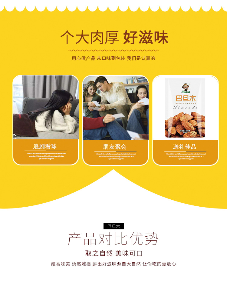 手剥巴旦木薄壳干果休闲零食 坚果炒货